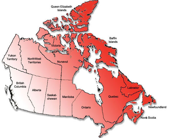 Canada is the second largest nation in the world (Canada has 9,093,507 sq km of land, behind Russia which has 16,377,742 sq km) with a multicultural population of 33.7 million (2009 estimate). Canada borders with the United States and shares coastal waters with Russia, Greenland and France.